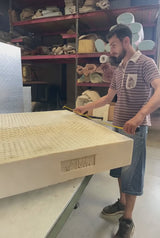 - Polsterung: 100 % Naturlatex, gepresste Baumwolle, Gänsedaunenschicht.