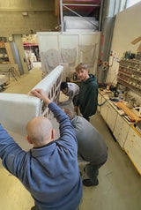 - Innenrahmen: Massives getrocknetes Buchenholz, Jutegurte mit Stahlfedern.