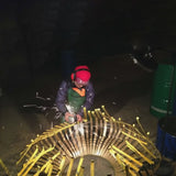 Fuga's wavelike structure and elegant stripes project dream-like atmospheres, creating an enchanting ambiance. Each curve and bend is a testament to meticulous craftsmanship, as Fuga is entirely cut and assembled by hand. Made from recycled and repurposed metal objects like food and paint cans, it not only adds brilliance to your space but also champions sustainability.